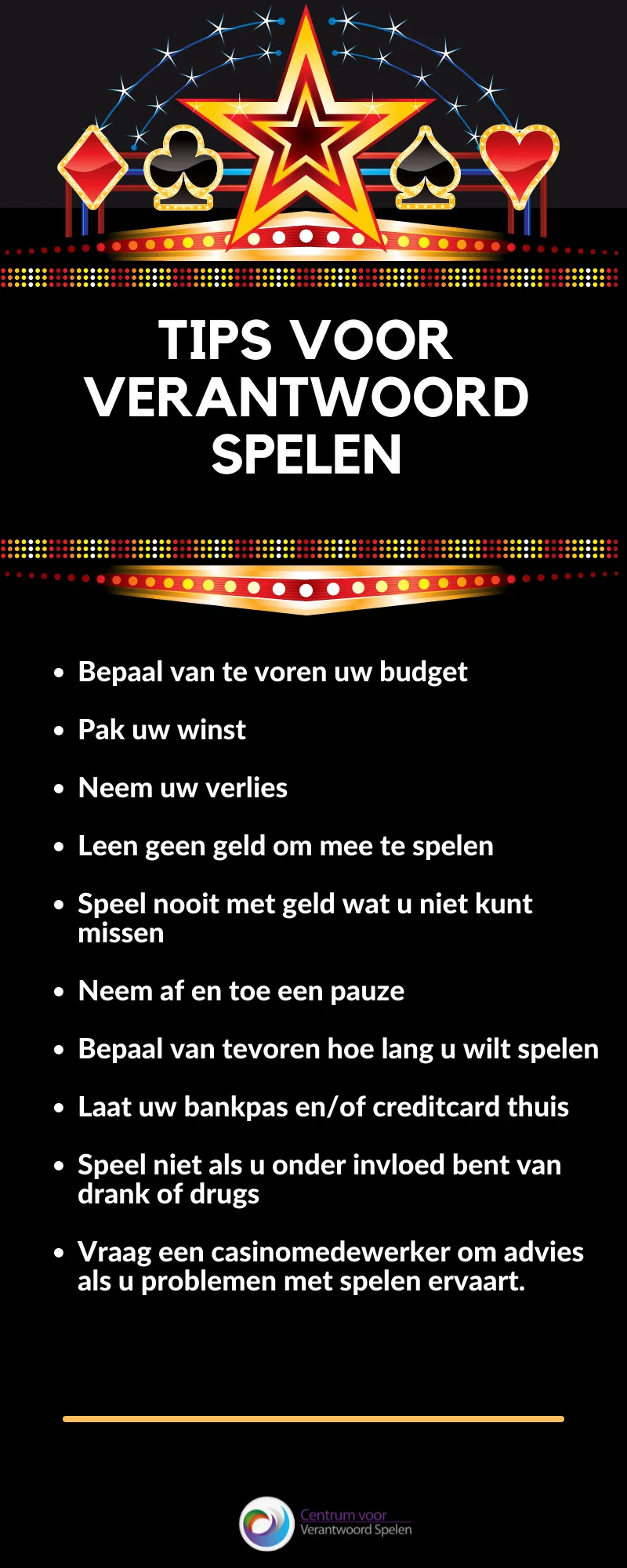Om met plezier en verantwoord te blijven spelen geven wij u graag de volgende tips: